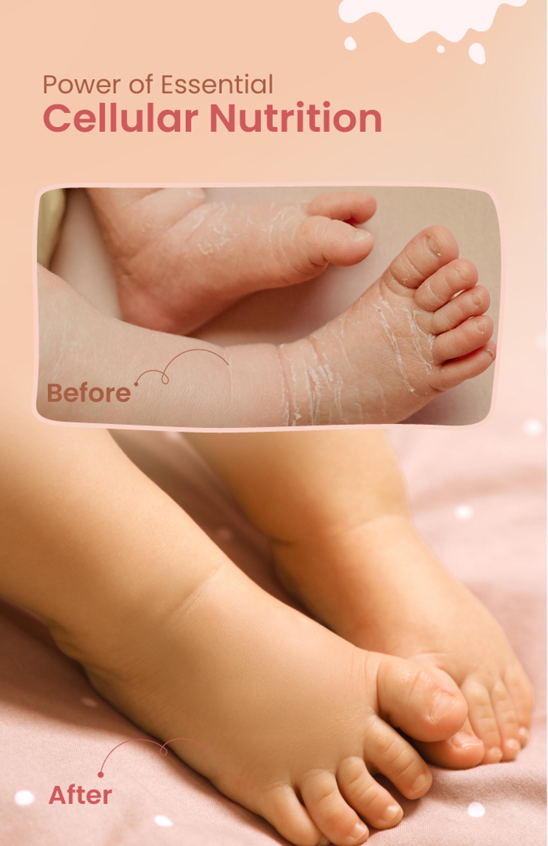 Baby skin may be rich in hydration, but due to its immature structure, it loses moisture quickly. This is why rich emollients and fatty acids found in ingredients like ghee, oils, and butters are essential - they lock in moisture and boost hydration to keep skin soft and supple.