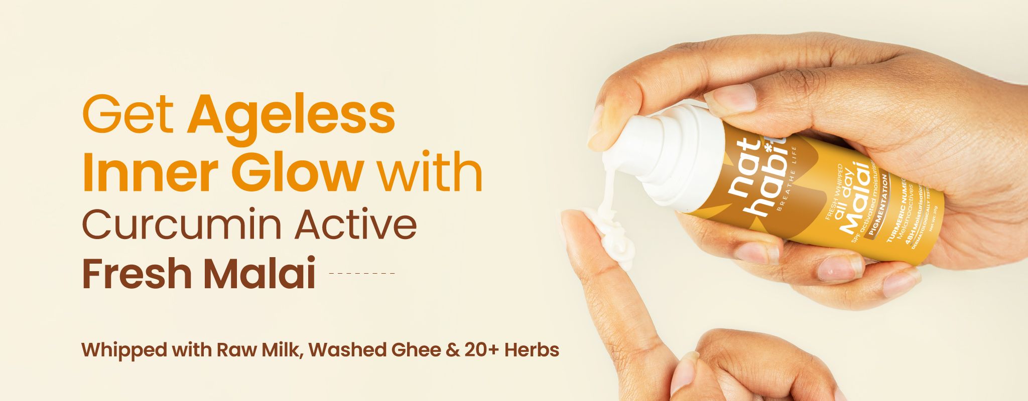 Fresh whipped malai for face moisturisation & sun protection. Whipped with raw milk & washed desi ghee, it goes through a 4-Step Ayurvedic process to arrive at a super activated face rejuvenator. Choose your Malai as per age, climate or concern.