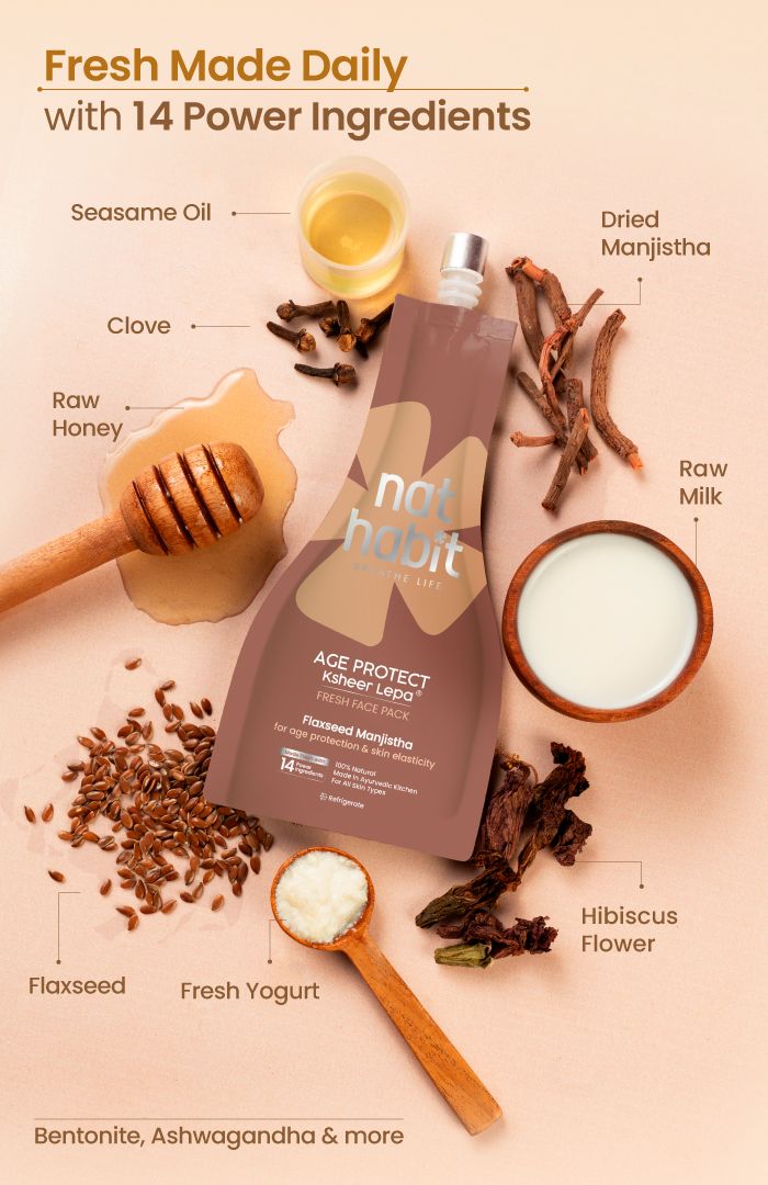 Made fresh daily in our Ayurvedic Kitchen, this pack is loaded with real milk, yogurt, nut oils, and potent herbal bioactives. It nourishes deeply, reaching every layer and cell, supporting their natural functions to energize, protect, and revive the skin for a supple, radiant glow.